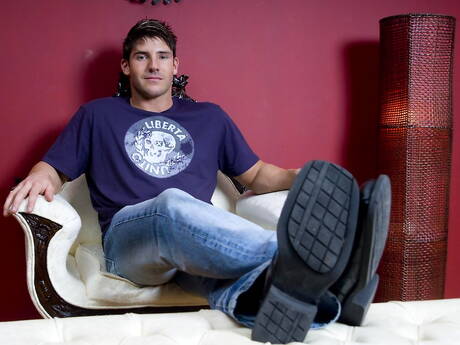 Well-built Jeremy Talbot posing naked and showing tight butt