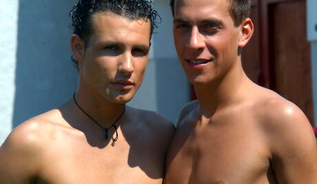 Young Alexandr and swedish husky guy Tomas Brand fuck after blowjob and fisted outdoor