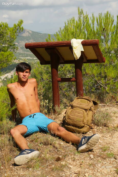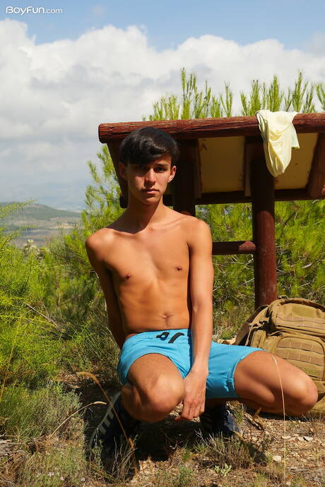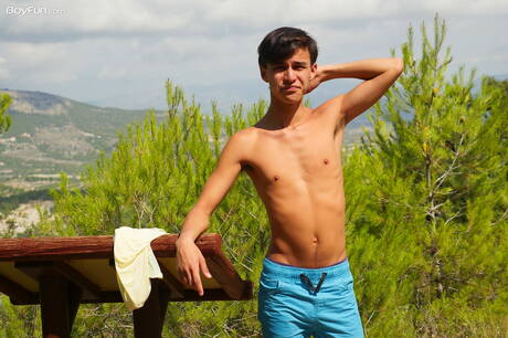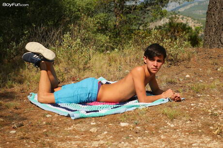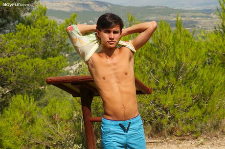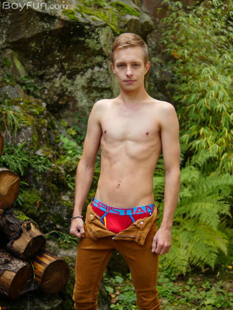 Young dude Maxxie Rivers posing nude and showing tight butt outside