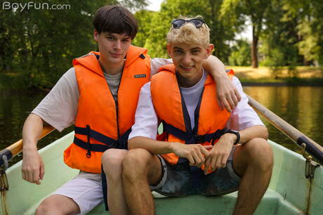 Young Elio Pjatteryd and young boy Jared Cloud make a love outside