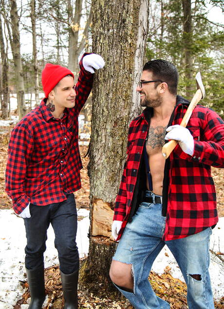 Young Taylor Briggs and canadian muscular Ryan Bones in handjob sex action