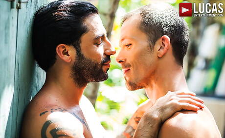 Lucas Entertainment: American hairy stud Jimmie Slater and cuban stud Nick Cross in hot homosexual scene outdoor