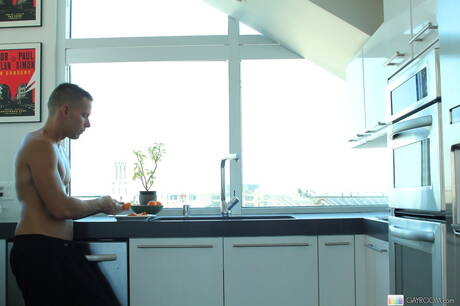 Massage Bait: American hunk Shane Frost fuck after dick sucking in the kitchen