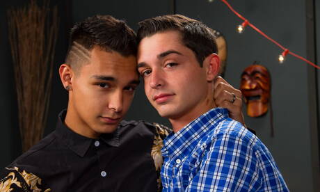 Helix Studios: American pretty boy Grayson Lange and twink Felix Medina fuck ass after sucking