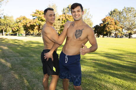 Sean Cody: American stars hunk Brysen and bull Jayce in hard anal sex outside