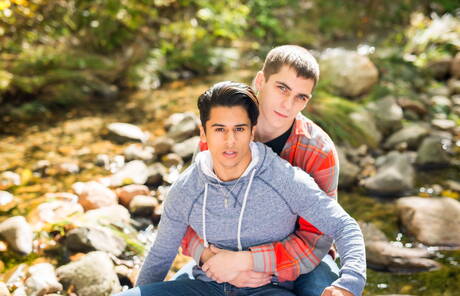 Icon Male: American stars tough guy Armond Rizzo and young dude Kory Houston posing naked outdoor