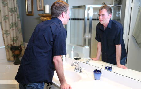 Pride Studios: American young dude Tripp Townsend playing with cock in bathroom