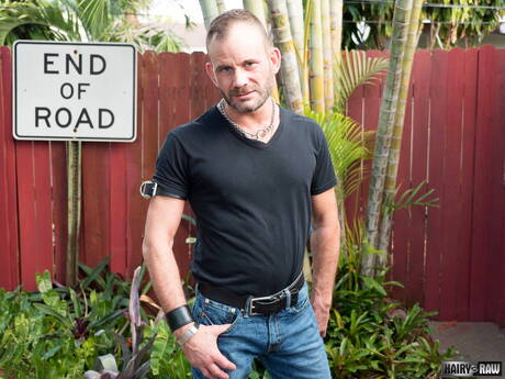 Hairy and Raw: Bear Bruce Bacch posing nude and showing his butt outside