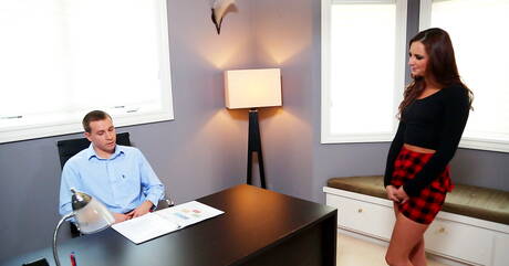 Next Door Studios: Bisexual David fucking and cumming on face Hope Howell in the office