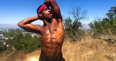 Next Door Studios: Black tough guy Adrian Hart jerking with toy outdoor