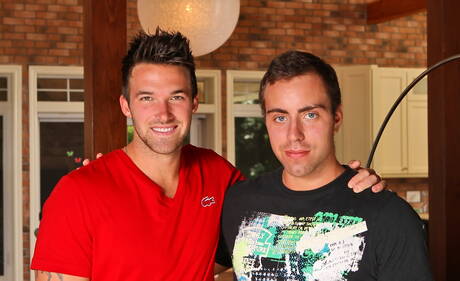 Next Door Studios: Canadian beefcake Trystan Bull and beefy Alec Leduc in dick sucking scene