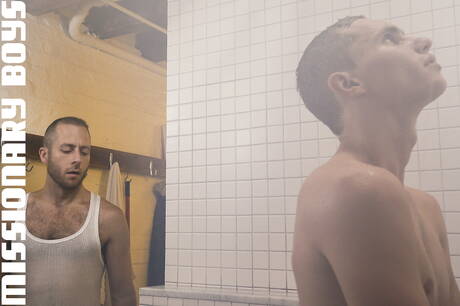 Missionary Boys: Famous americans, twink Darron Bluu and mature bear Joel Someone in hot ass fuck action in shower