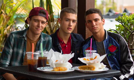 Helix Studios: Horny boys Evan Parker, Sean Ford and Beck Hartley in hot 3some anal sex at the pool