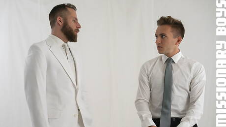 Missionary Boys: Hot american dudes muscular Cameron Basinger and mature bear Joel Someone fuck ass after sucking dick