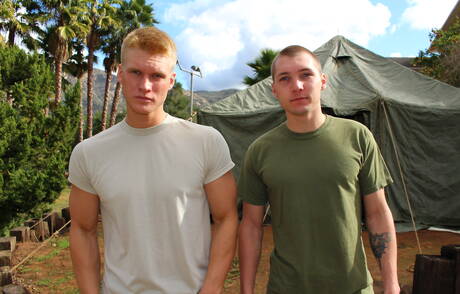 Active Duty: Hot americans, superstud Elye Black and tough guy Blake Effortley fuck after blowjob outside