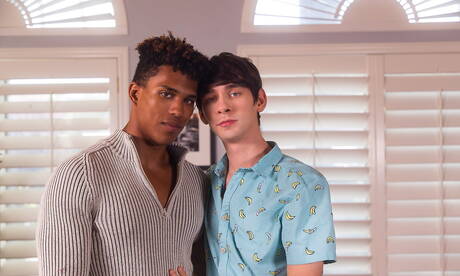 Helix Studios: Hot twink Damien Ellis and hot twink Caleb Gray fuck interracial ass after sucking cock