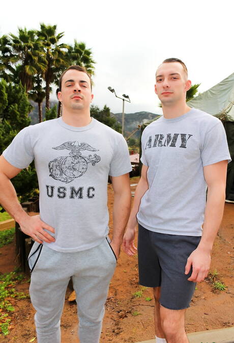 Active Duty: Hunk Johnny B and american strong bull Alex James in hard anal sex outdoor