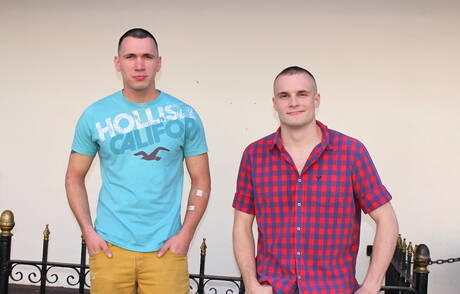 Active Duty: Hunky guy Nico and american young boy Colton Phobos in hot ass fuck action outdoor