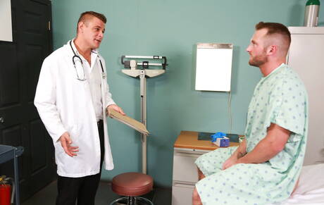 Pride Studios: Husky guy Aiden Hart and american beefcake Jace Chambers drilling an ass with fisting