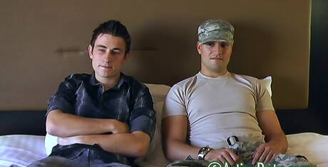 Active Duty: Husky guy Bryce and beefcake Ryan in blowjob scene