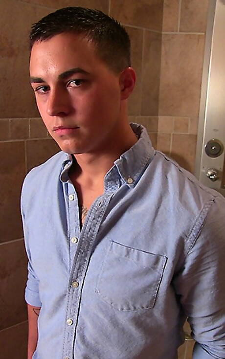 Active Duty: Muscular Grant shows a well-build body in bathroom