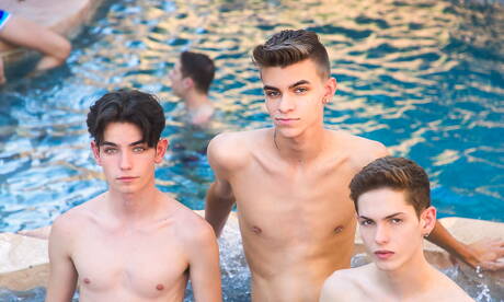 Helix Studios: Nasty guys Eli Bennet, Jace Myers and Riley Finch in hot threesome ass bang in the pool