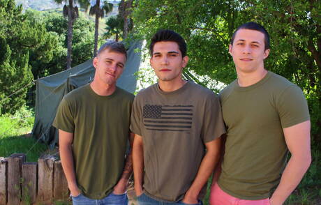 Active Duty: Nasty guys Ryan Jordan, Bradley Hayes and Johnny Stacks in hot groupsex outside