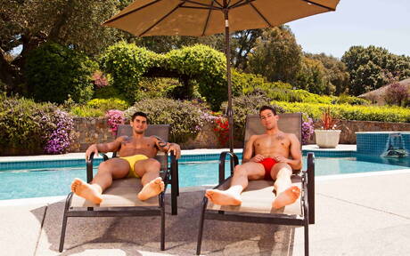 Next Door Studios: Nice american boys tough guy Tyler Torro and muscular Dominic Reed in hot homosexual action at the pool