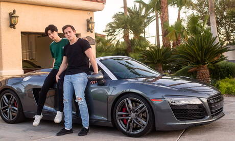 Helix Studios: Nice american buddies young dude Reece Jackson and tough guy Josh Brady fuck ass after blowjob outdoor