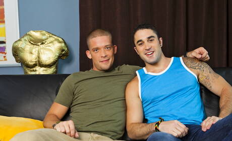 Next Door Studios: Pretty american boys strongman Samuel Otoole and husky guy Caleb Colton fuck ass after blowjob