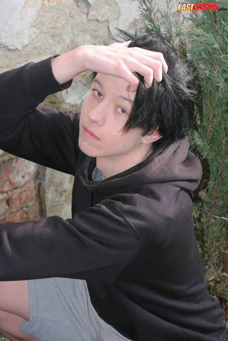 East Boys: Pretty boy Kevin Sanders get naked and showing his butt outdoor