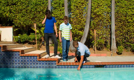 Helix Studios: Shameless buddies Alex Greene, Ian Levine and Sage Porter have a hot threesome sex at pool