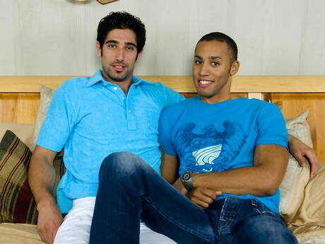 Randy Blue: Strongman Shawn Harriri and ebony strongman Tyler Johnson fuck ass after blowjob