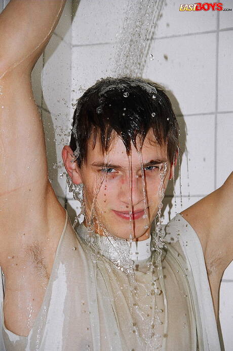 East Boys: Twink Robbie undressing and showing nice ass in shower
