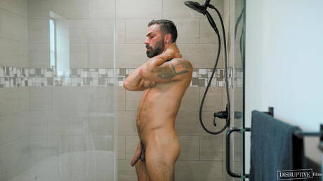 Disruptive Films: Two american boys mature bear Cole Connor and hairy stud Adam Ramzi have a hot couple scene in bathroom