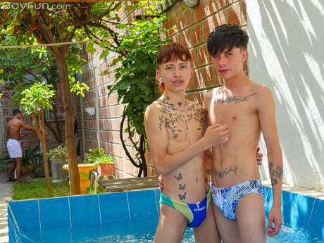Boyfun: Young Christian Escobar and young boy Jackson Perceo in hot homosexual scene at the pool