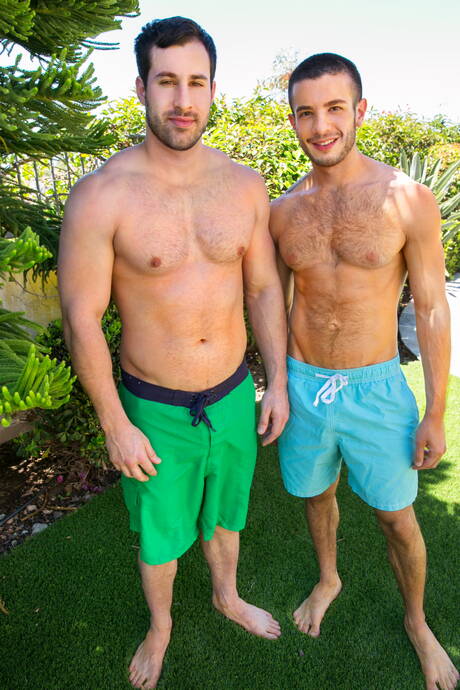 Sean Cody: Il bel ragazzo americano Manny e il forzuto Randy fanno sesso di coppia in piscina