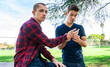 Men: Le star americane Michael Delray e il bel ragazzo Theo Brady fanno sesso di coppia all'aperto