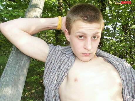 East Boys: Il bellissimo ragazzo Frederik si spoglia e mostra il suo culo stretto all'aperto