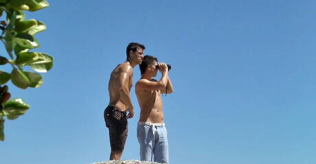 Belami Online: Gli amici sexy Kris Evans, Phillipe Gaudin e Harris Hilton in un duro sesso a tre all'aperto