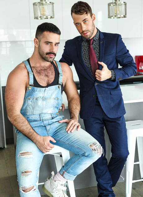 Men: フランスのゲイのクマ、テディ・トーレスとカナダのハスキーの男、ブランドン・ジョーンズがチンコをしゃぶった後にアナルファック