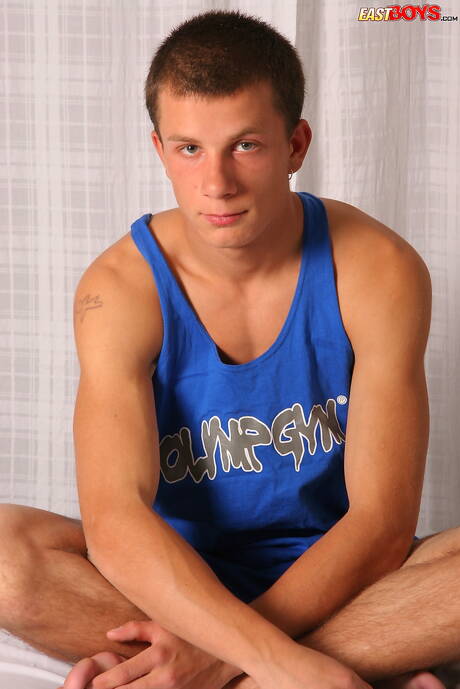 East Boys: たくましい男クリスピンがチンポをシゴく