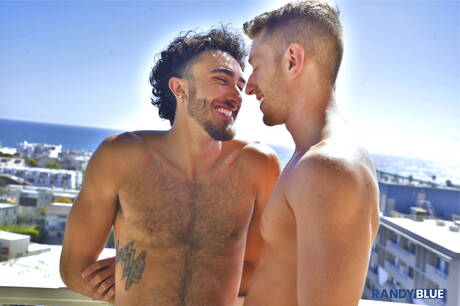 Randy Blue: ハスキーな男のジーノ・ゼネッティとアメリカ人のイケメン、ジェイク・クレリンが屋外でアナルを掘っている