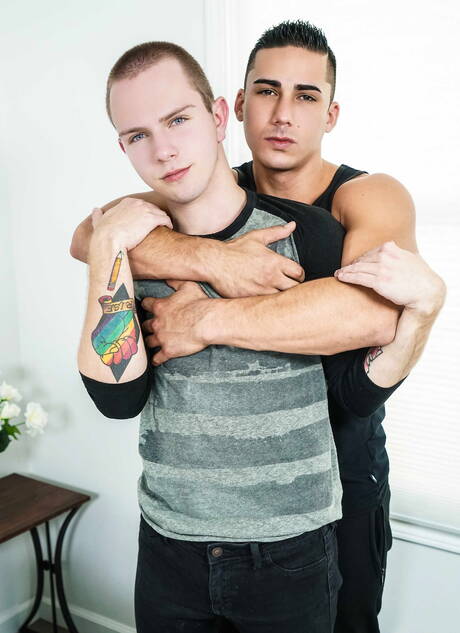 Men: 素敵なアメリカ人の仲間、筋肉質のトファー・ディ・マッジョと若い男のティモシー・ドレイクがキッチンで熱いカップルセックスをする