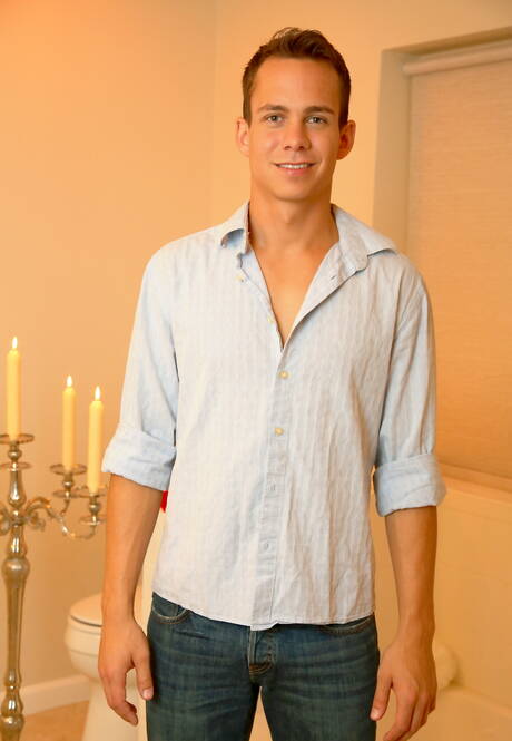 Next Door Studios: 素敵なアメリカ人の仲間のタフガイ、ドレイク・タイラーと若い男ギャレット・クーパーがバスルームでチンコをしゃぶった後にファックする