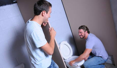 Men: ストロングマンのアンドリュー・ブルーとアメリカ人のたくましいセバスチャン・ヤングがバスルームでチンポをしゃぶった後に尻をファックする