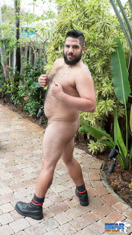 Bear Films: American bear Lanz Adams shows a beautiful body outdoor