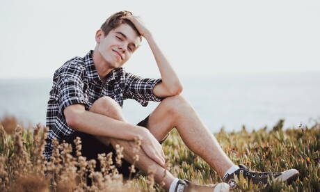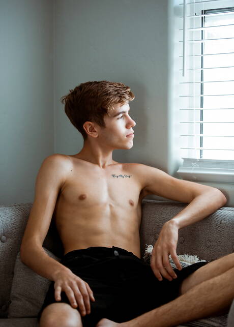Helix Studios: American beautiful boy Levi Rhodes get naked and showing tight ass outside