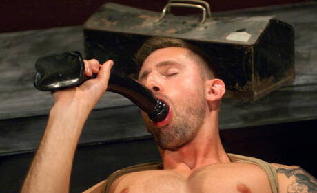 Fisting Central: American beefy Troy Daniels masturbating with sex toy