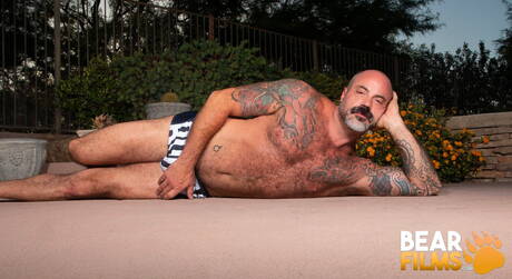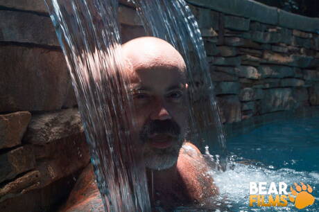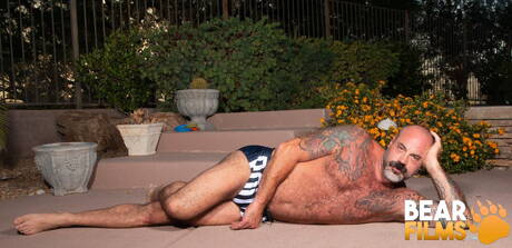 Bear Films: American bodybuilder Scotty Rage posing nude at pool